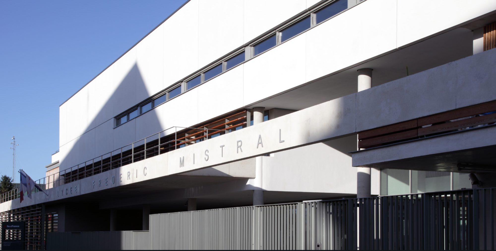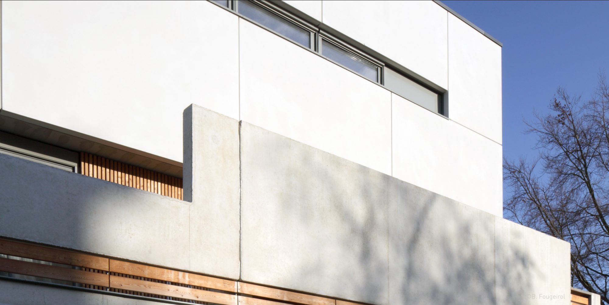 In a complete renovation of this secondary school dating from the 70’s and its extension, the façades were treated with an external insulating material applied over the existing preserved cladding and a glass fibre reinforced concrete skin attached to the structure