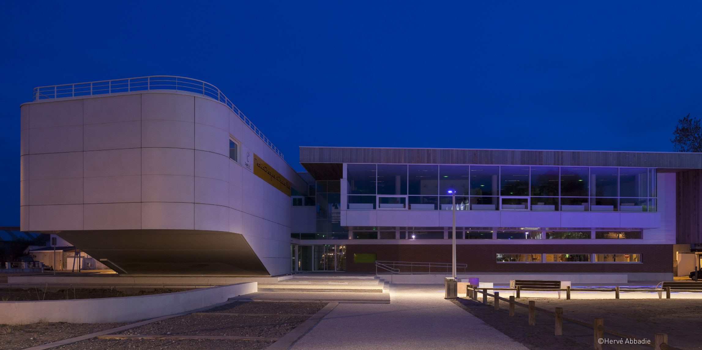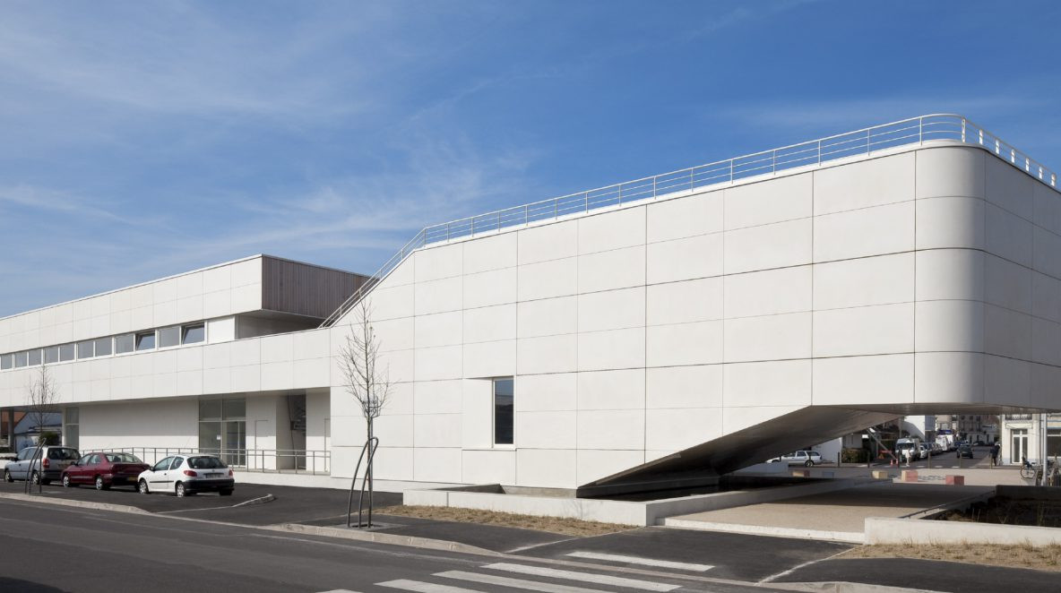 The media library in Berck, entirely built on a metal structure, is clad with glassfiber reinforced concrete panels for the mineral facings of the facades. These large flat and curved units are assembled directly on the metal structure of the building.